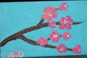 “Created during the Colonel John Mitchell Chapter’s Cherry Blossom painting gathering, honoring the Cherry Blossom Administration.”